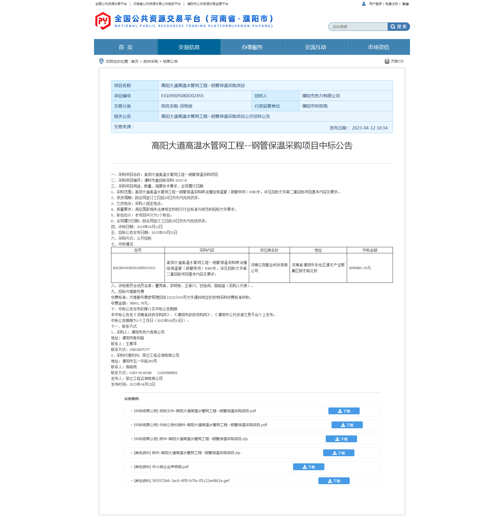 喜報(bào):河南億陽管業(yè)科技有限公司成功中標(biāo)“濮陽市熱力有限公司高陽大道高溫水管網(wǎng)工程--鋼管保溫采購項(xiàng)目”